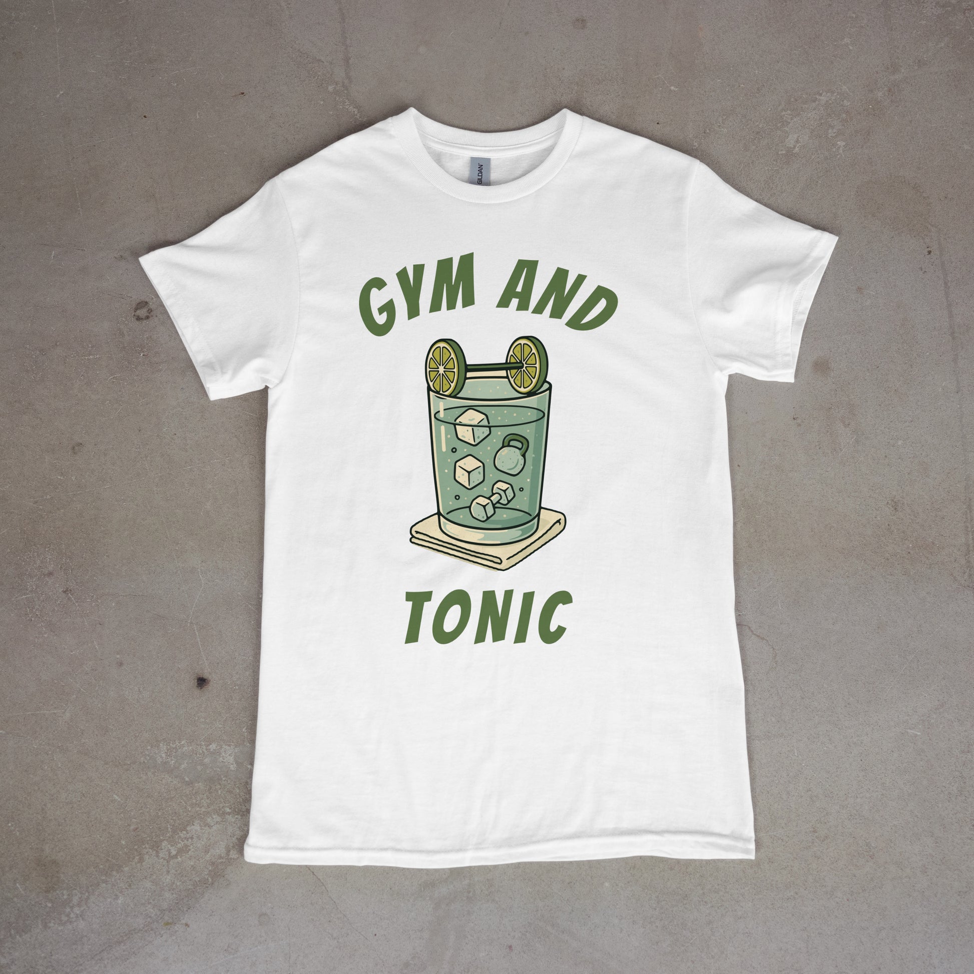This “Gym and Tonic” tee is the perfect blend of fitness and fun. The front features a playful, hand‑drawn illustration of a cocktail glass filled with cubes and a lemon wedge – but instead of gin, it’s brimming with gym energy. Bold lettering above and below the glass reads “Gym and Tonic,” giving a clever twist on the classic drink and showcasing your commitment to gains.